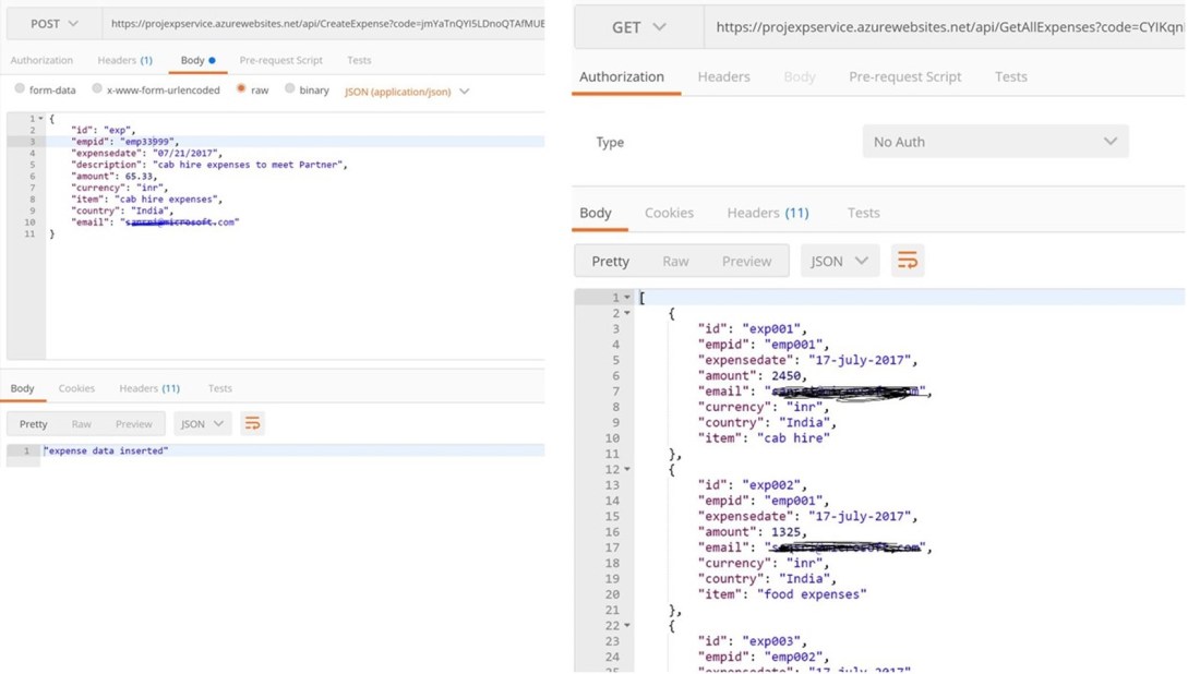 - GetAllProjectExpenses that returns all the Project Expenses Data from the collection in Cosmos DB